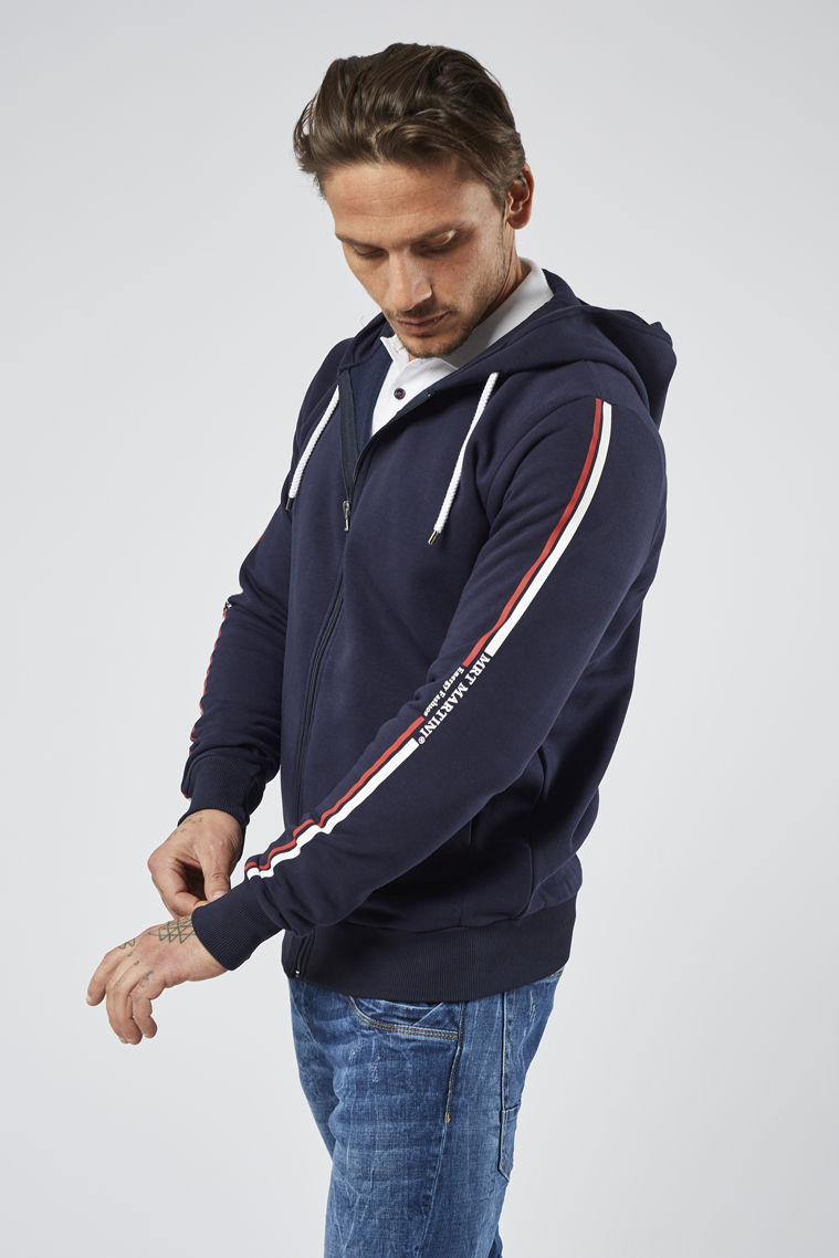 Φούτερ ζακέτα από 65% βαμβάκι και 35% polyester της MRT Martini. Ιδανική για fashion ντυσίματα. Διατίθεται σε μπλε σκούρο χρώμα.
