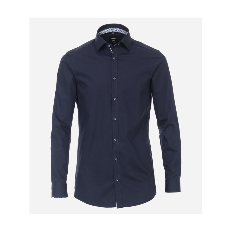 Μακρυμάνικο, μονόχρωμο πουκάμισο της Venti (113654700/116) σε μπλέ χρώμα με ημιρέξ γιακά. Έχει σχέδιο στο εσωτερικό της μανσέτας . Έχει στενή γραμμή.